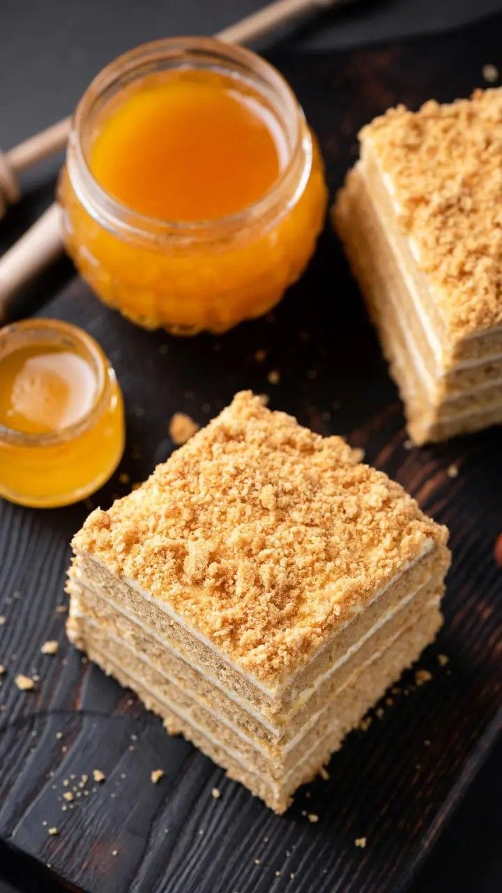 Layered honey sponge cake with gentle sweetnessю