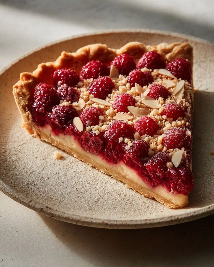 Berry tart with a fresh raspberry filling and tender pastry base.