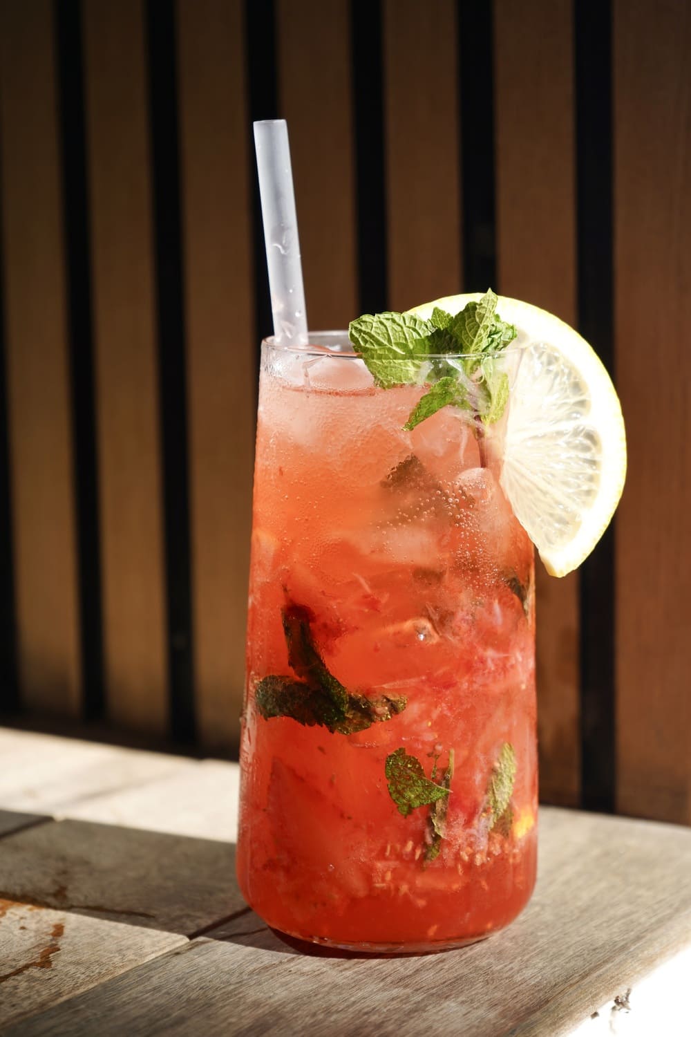Fresh strawberry and mint over chilled lemonade.
