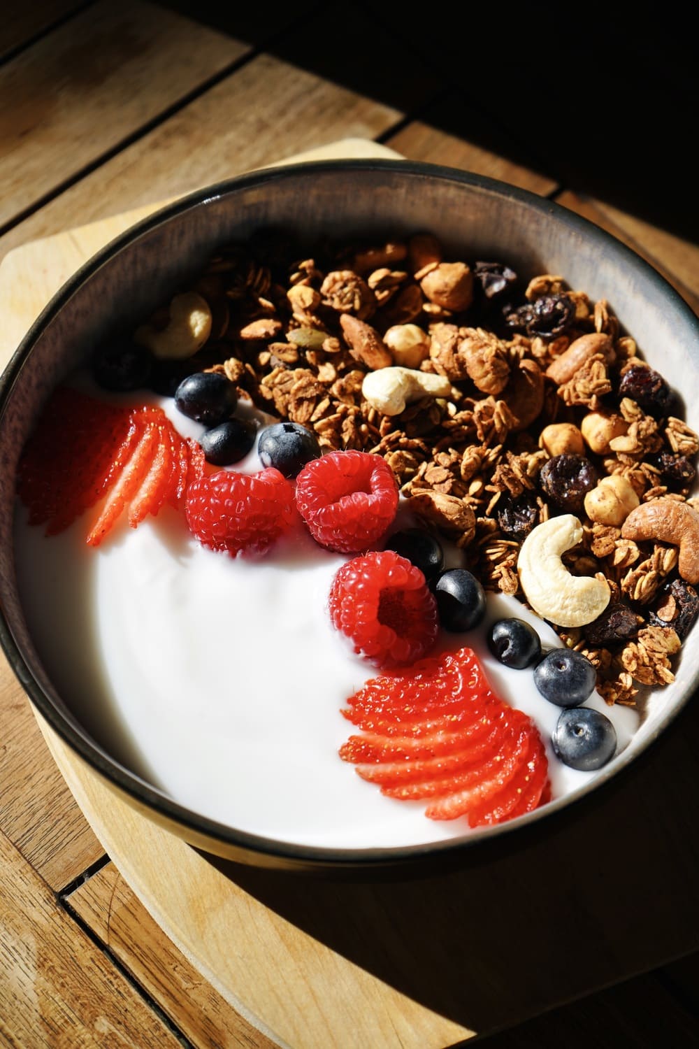 Crunchy granola served with thick Greek yogurt and subtle sweetness.