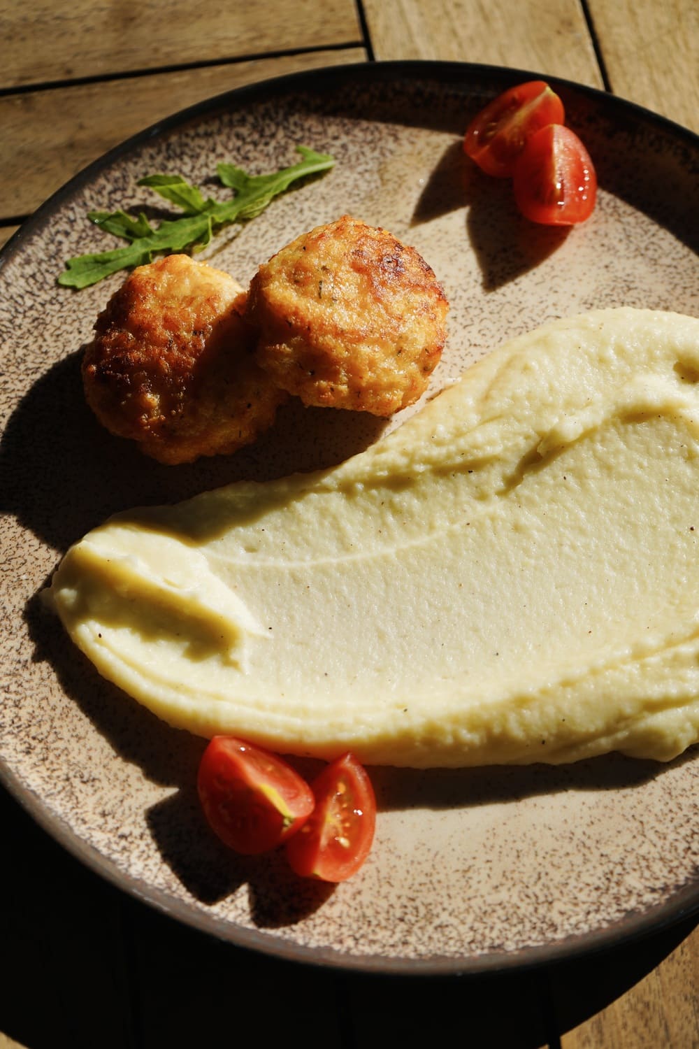 Delicate rabbit patties served with creamy parmesan mash
