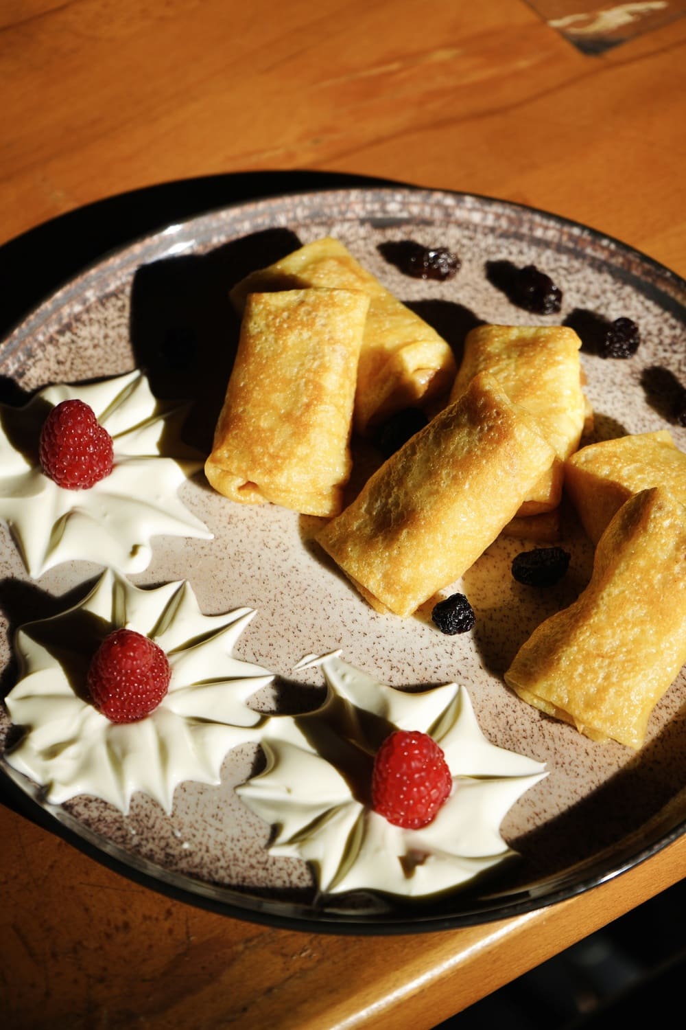 Thin crepes filled with delicate cottage cheese for a soft, sweet treat.