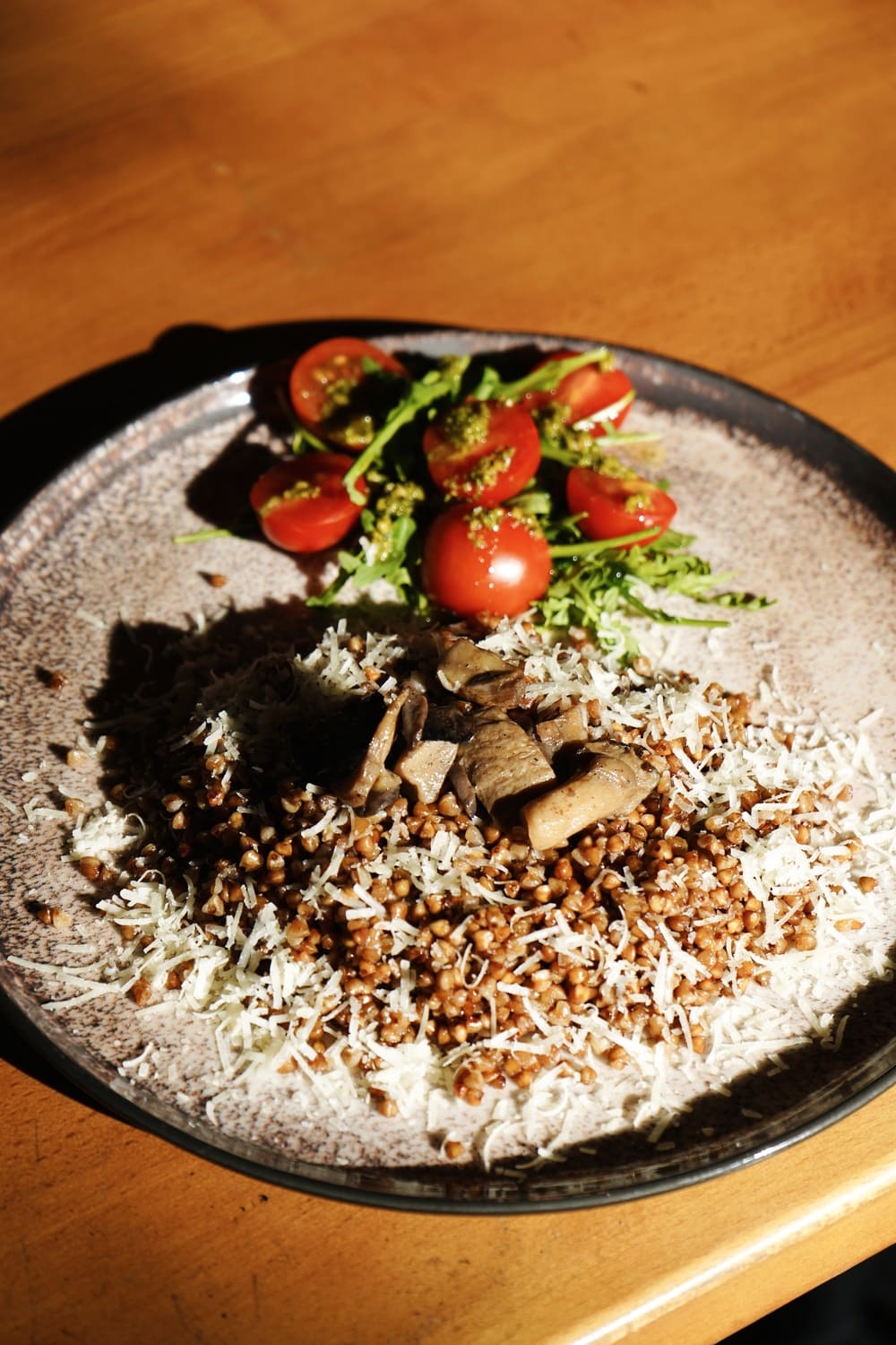 Warm buckwheat infused with earthy mushrooms and nutty parmesan.