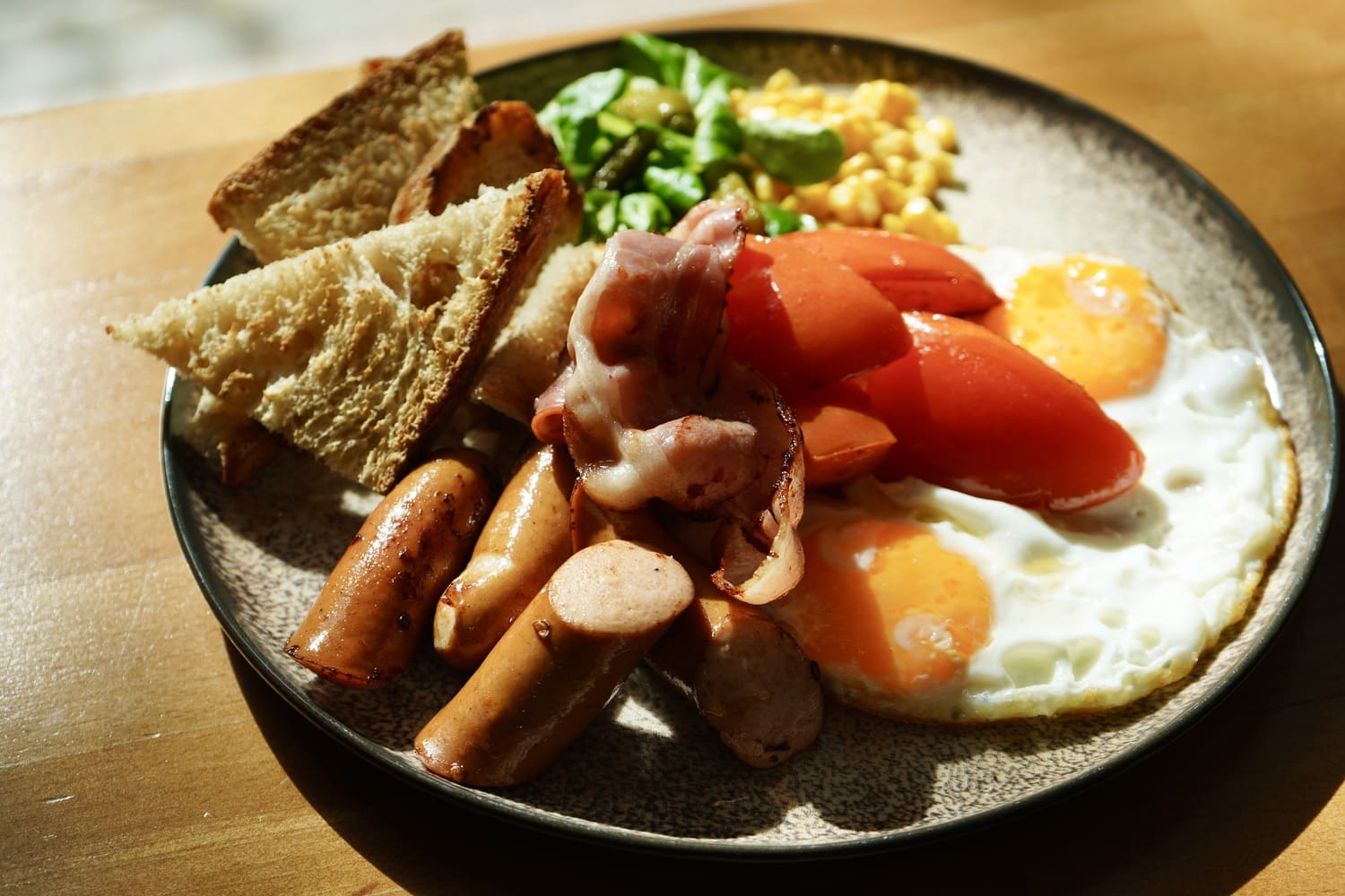 A classic plate of eggs, sausage, and sides for a full, hearty start.